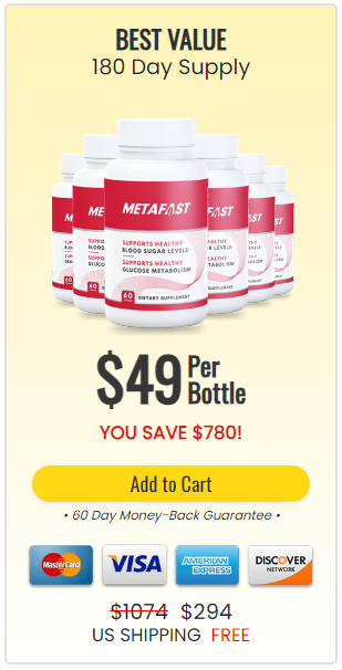 Metafast typically costs $179 per bottle on retail shelves. However, Metafast’s price has been temporarily reduced to $69 per bottle or less. Save $780 Limited Time Offer Today Order Now